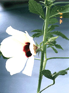 6月2日 温室内では、はや花をつけたケナフもあります